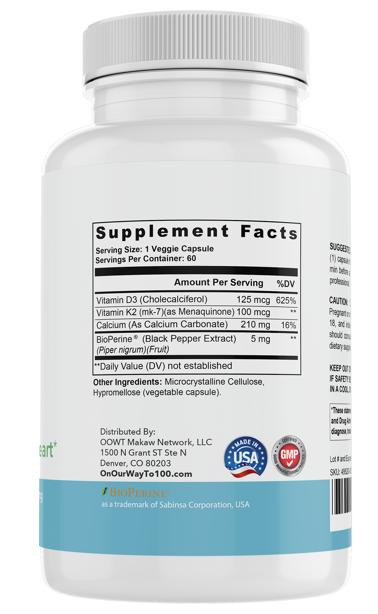 • Vitamin K2 + D3 helps support proper calcium utilization and structural bone strength.*